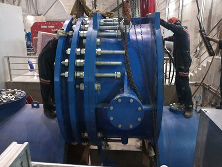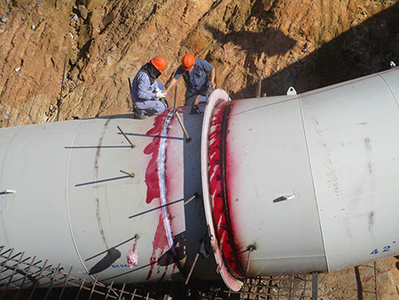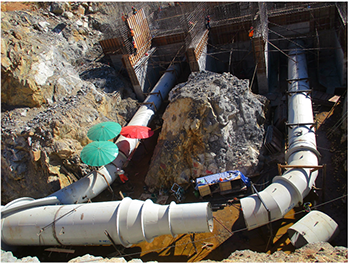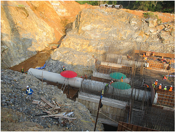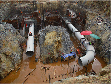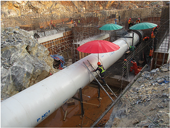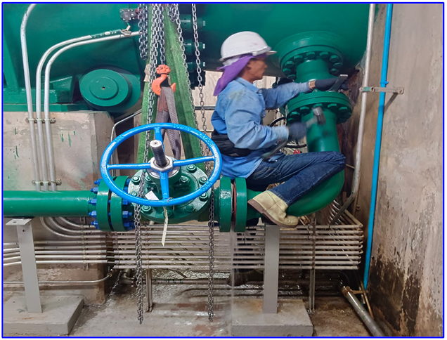 Chulabhorn River Outlet Hydropower Project (EGAT)-Welding penstock, By-pass pipe System-Install main inlet Valve System